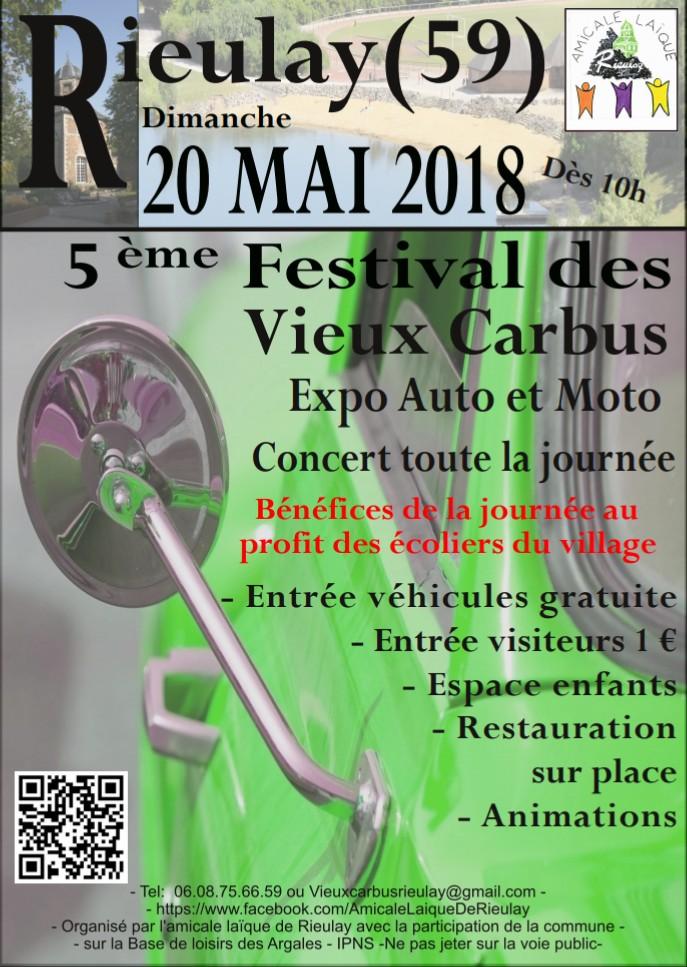 Au profit des écoliers de Rieulay, l'Amicale Laïque organise son 5éme rassemblement de voitures anciennes, de collection et de prestige le dimanche 20 mai 2018, dès 10h.