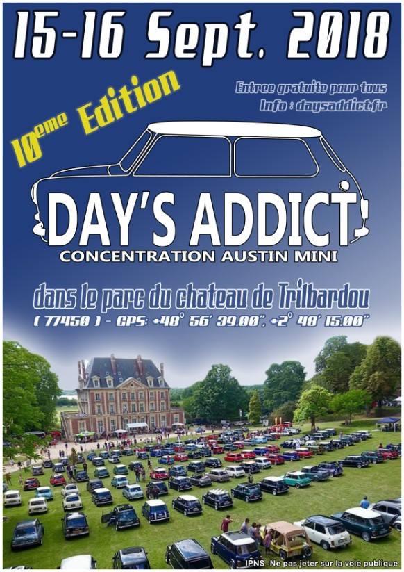 L'aventure des Day's Addict commence en 2009 de l'idée de réunir un maximum de minis au même endroit, en laissant l'accès libre et gratuit!!! La première édition a lieu à Boran sur Oise en parallèle de la fête de la Saint Jean. Devant la réussite de cette première édition, nous décidons de recommencer l'expérience. presentation