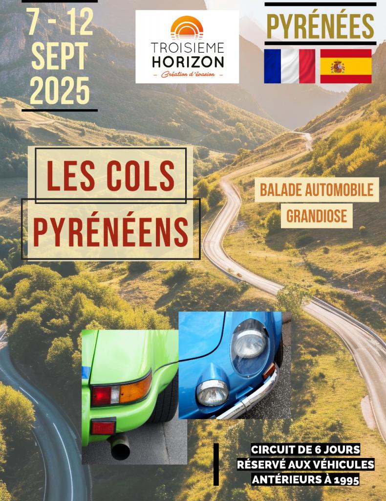 Ce circuit touristique strictement réservé aux véhicules de plus de 30 ans nous mènera de Perpignan au Pays Basque et empruntera tous les cols qui font la légende des Pyrénées, et fera même quelques incursions chez nos voisins espagnols.