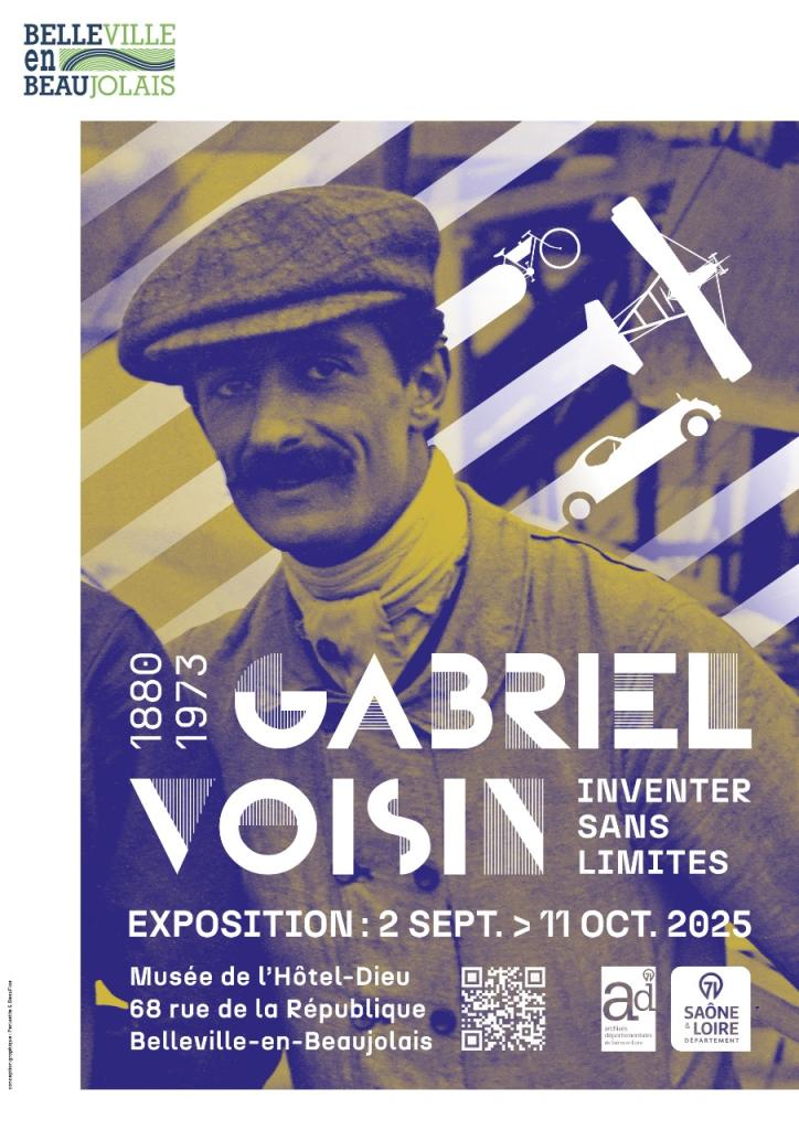 Le musée de l'Hôtel-Dieu accueille du 2 septembre au 11 octobre 2025 l'exposition "Gabriel Voisin : inventer sans limites" créée par les Archives Départementales de Saône et Loire.