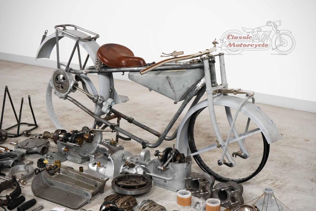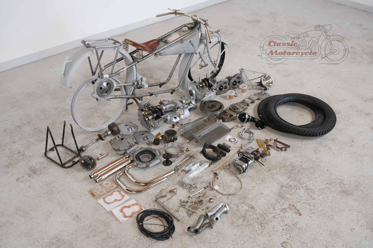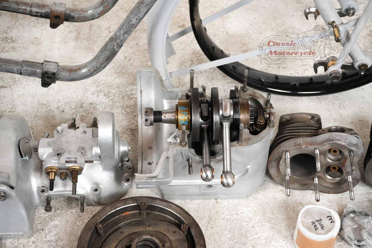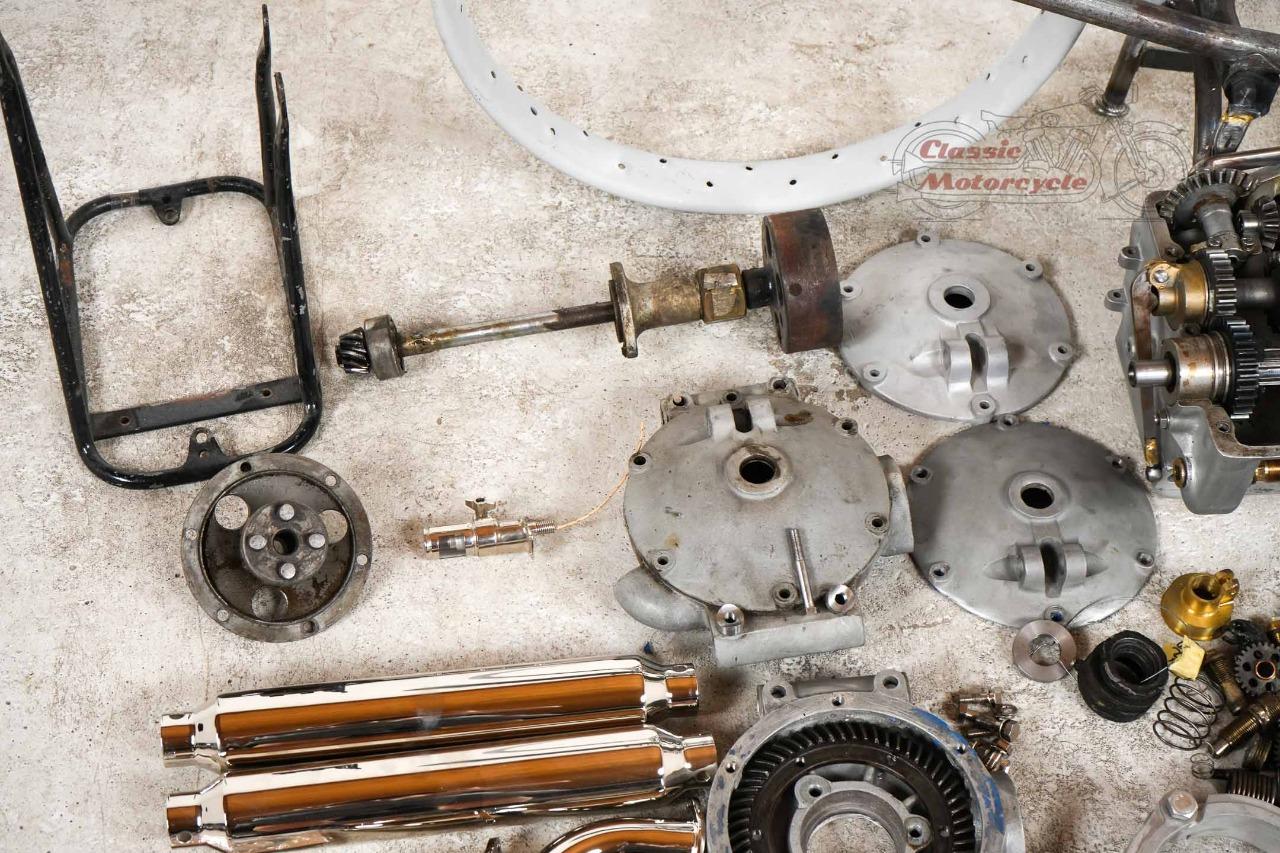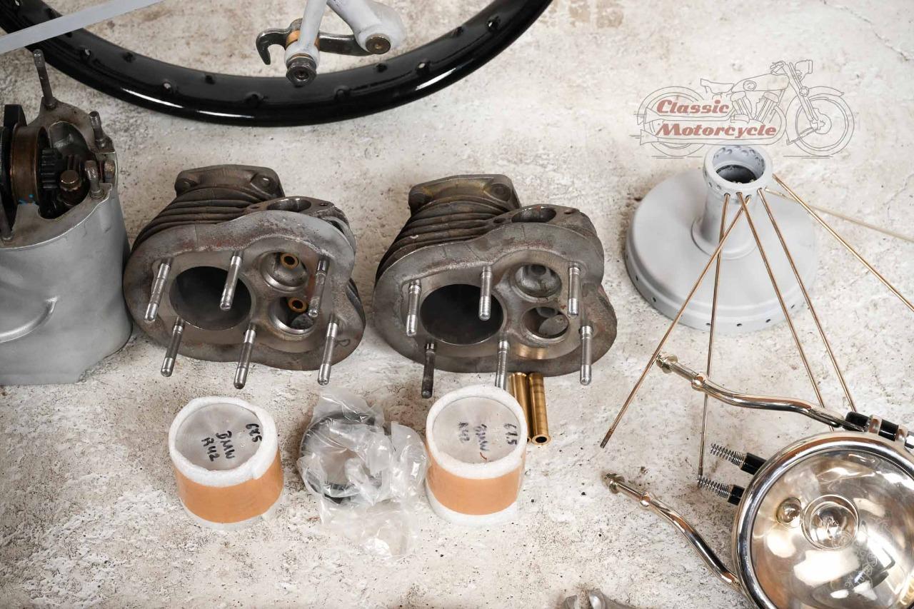 La particularité de ce projet : les pièces principales de la machine sont d'origine (moteur, boîte de vitesses, cadre, fourche, réservoir). La plaque signalétique d'origine correspond au numéro de cadre et de moteur. Les numéros de boîte de vitesses, de moteur et de vilebrequin correspondent tous. Dans cette configuration, le moteur, la transmission et le châssis correspondent à la livraison d'usine. Des photos de l’état de l’objet trouvé avant restauration sont disponibles.