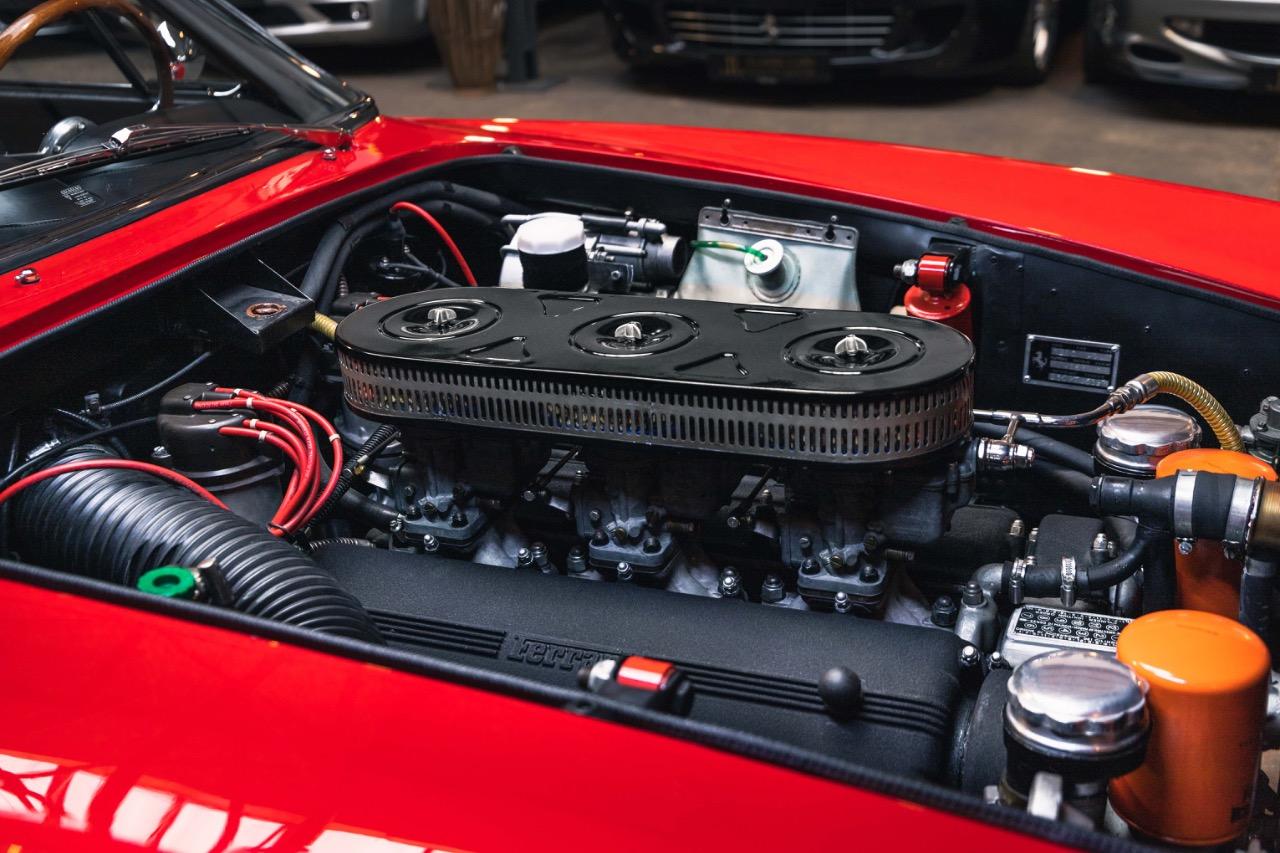 Nous avons l’honneur de proposer à la vente une exceptionnelle Ferrari 250 GT Lusso de 1964. Produite à seulement 350 exemplaires, elle fait partie des modèles les plus recherchés de la marque au cheval cabré. Cette Lusso bénéficie d’un historique parfaitement connu et documenté. Elle a été restaurée il y a quelques années avec le plus grand soin. De nombreux frais ont été engagés auprès de l’Atelier des Coteaux, garantissant une présentation et un fonctionnement remarquables. Son parcours l’a même conduite à rejoindre temporairement la collection du Musée Ferrari à Maranello, un privilège rare. Elle est accompagnée de son célèbre classeur rouge Ferrari Classiche, attestant de son authenticité. Sa teinte rouge profonde évoque toute la passion et l’âme italienne propres à Ferrari. Sous la lumière, sa carrosserie révèle des courbes d’une élégance intemporelle. Le dessin signé Pininfarina sublime son long capot et sa poupe délicatement fuyante. Chaque ligne semble tracée pour célébrer la vitesse et la beauté. L’habitacle noir crée un contraste raffiné avec la robe rouge éclatante. Les sièges baquet enveloppent le conducteur dans une atmosphère à la fois sportive et feutrée. Les compteurs, si caractéristiques avec leur typographie fine et leur disposition centrale, rappellent l’âge d’or du grand tourisme. Le large volant en bois invite à prendre la route avec élégance. Les superbes jantes Borani à rayons complètent l’ensemble avec distinction. Elles soulignent le caractère racé de cette GT d’exception. À son volant, chaque trajet devient un voyage hors du temps. Cette 250 GT Lusso n’est pas seulement une automobile, c’est une œuvre d’art mécanique. Elle incarne le romantisme automobile italien, prête à écrire un nouveau chapitre de son histoire.