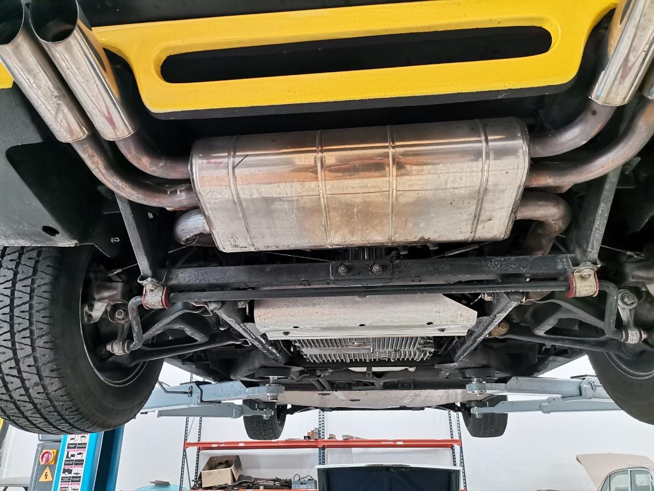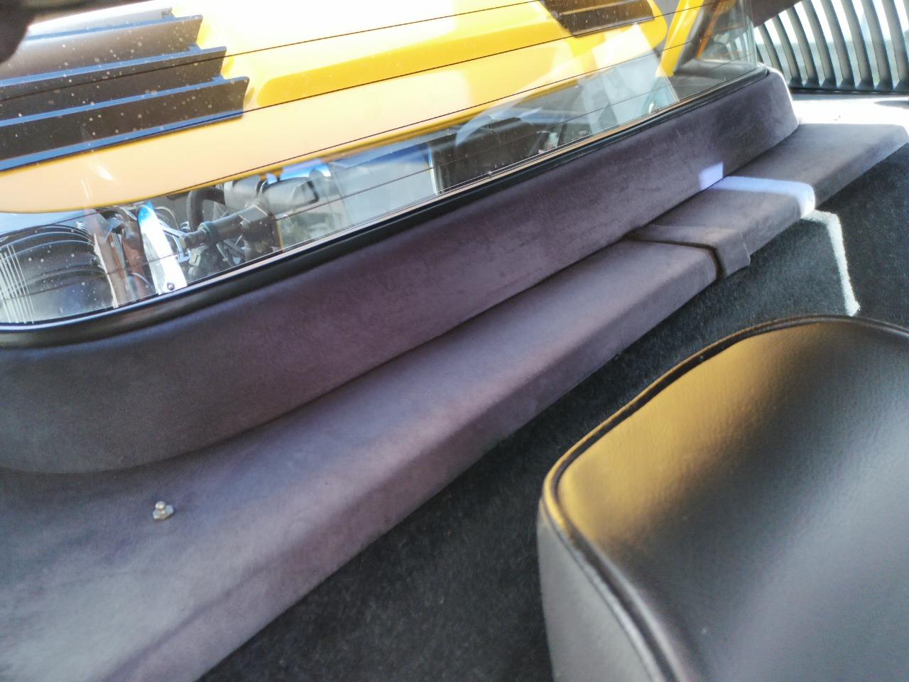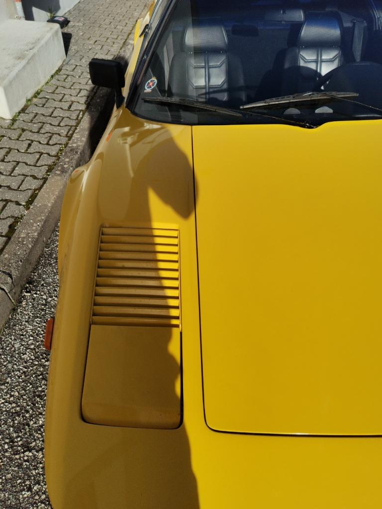 La voiture est finie en Giallo et dispose d'un panneau de toit noir amovible, de phares escamotables et de vitres électriques. À l'intérieur, les sièges garnis de cuir noir sont accompagnés d'un volant MOMO, d'une instrumentation Veglia, d'une chaîne stéréo Blaupunkt et de la climatisation