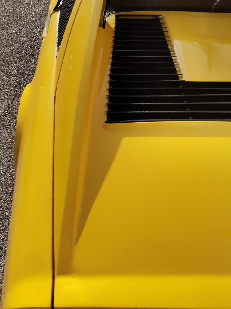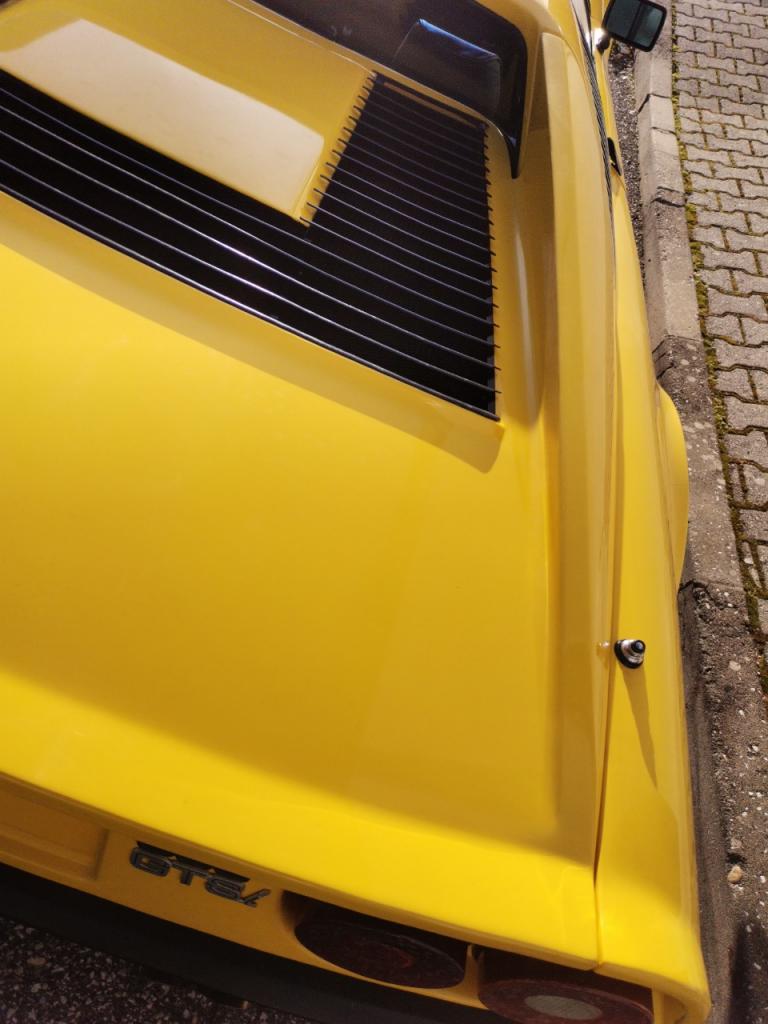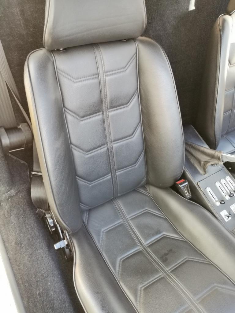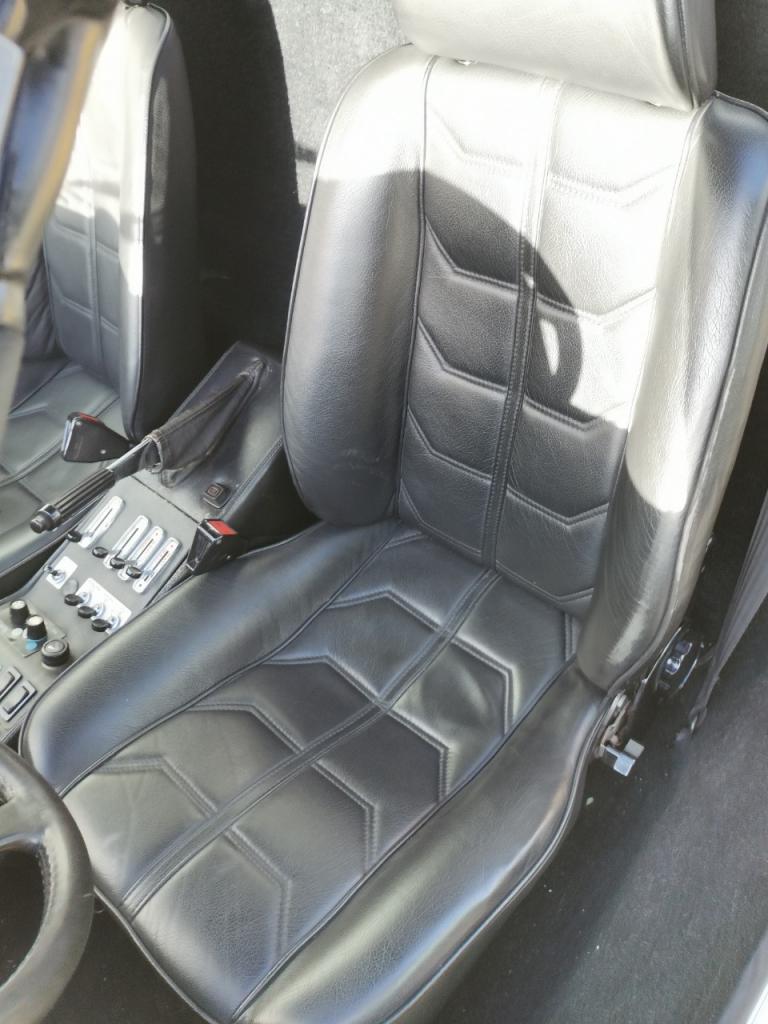 La voiture est finie en Giallo et dispose d'un panneau de toit noir amovible, de phares escamotables et de vitres électriques. À l'intérieur, les sièges garnis de cuir noir sont accompagnés d'un volant MOMO, d'une instrumentation Veglia, d'une chaîne stéréo Blaupunkt et de la climatisation