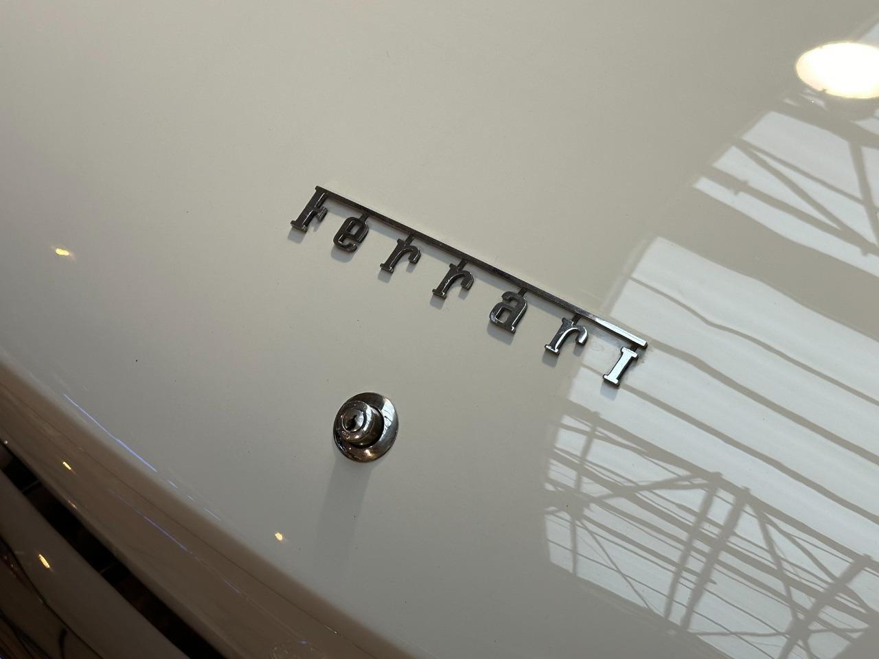 Successivement bleue à intérieur rouge, puis rouge à intérieur bordeaux, elle devient propriété du musée Manro-Classic en Autriche dans les années 2000. À cette époque, son moteur est non tournant. Tout change en 2013, lorsqu’elle fait l’objet d’une restauration complète. Elle retrouve alors sa configuration d’origine : Bianco 18934 Italver avec intérieur Pelle Rossa, comme le confirme son certificat d’authenticité Ferrari.