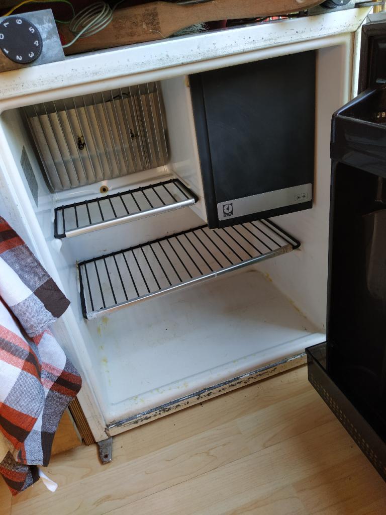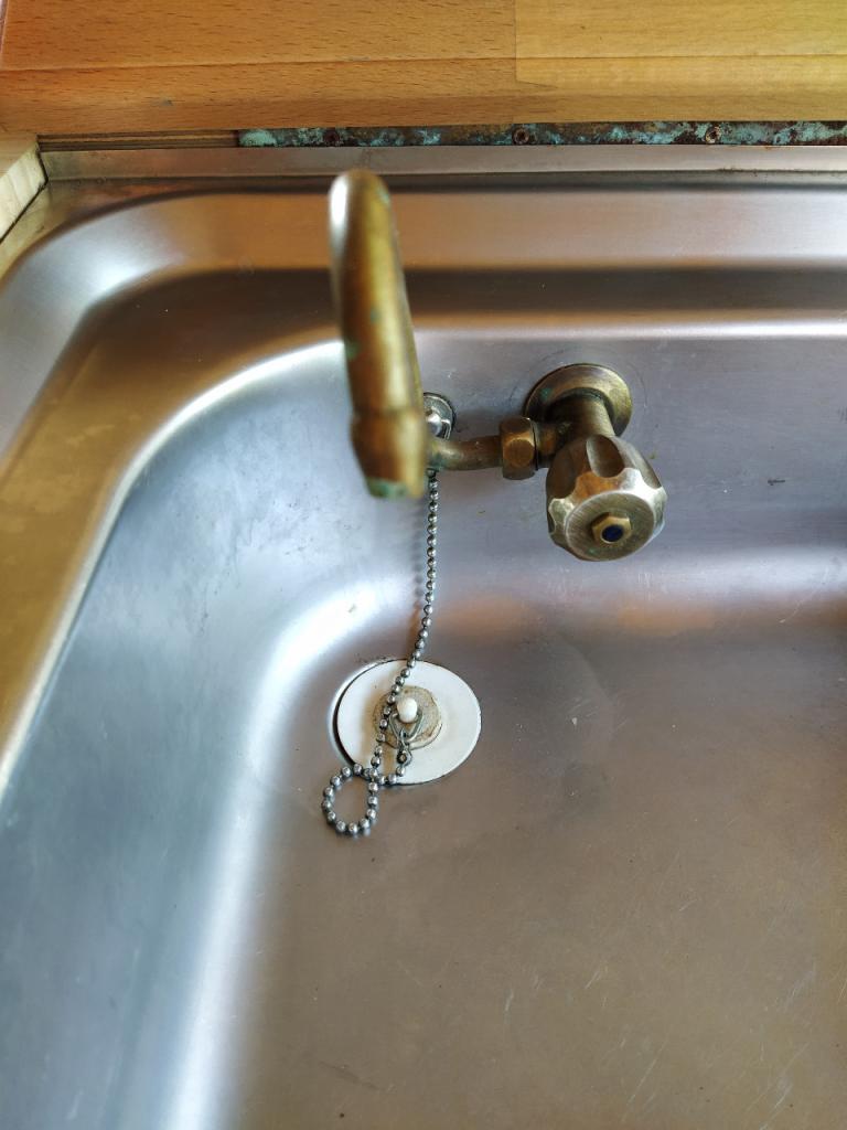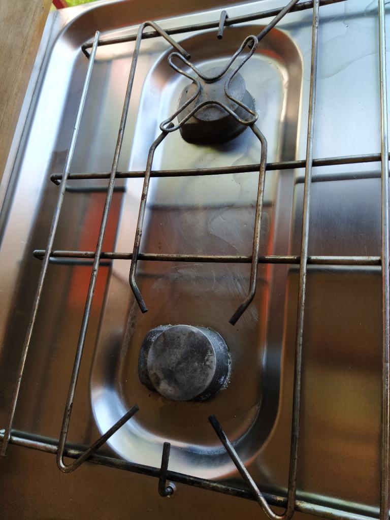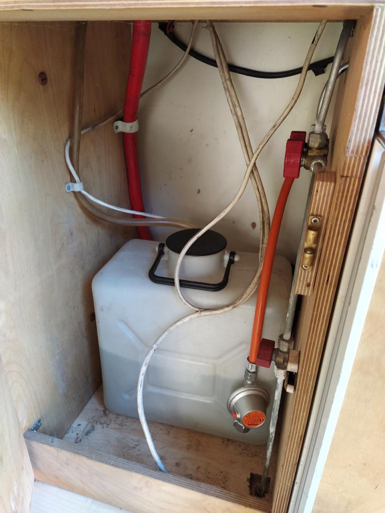 Equipement cuisine avec 2 becs au gaz, évier, réserve d’eau, frigo