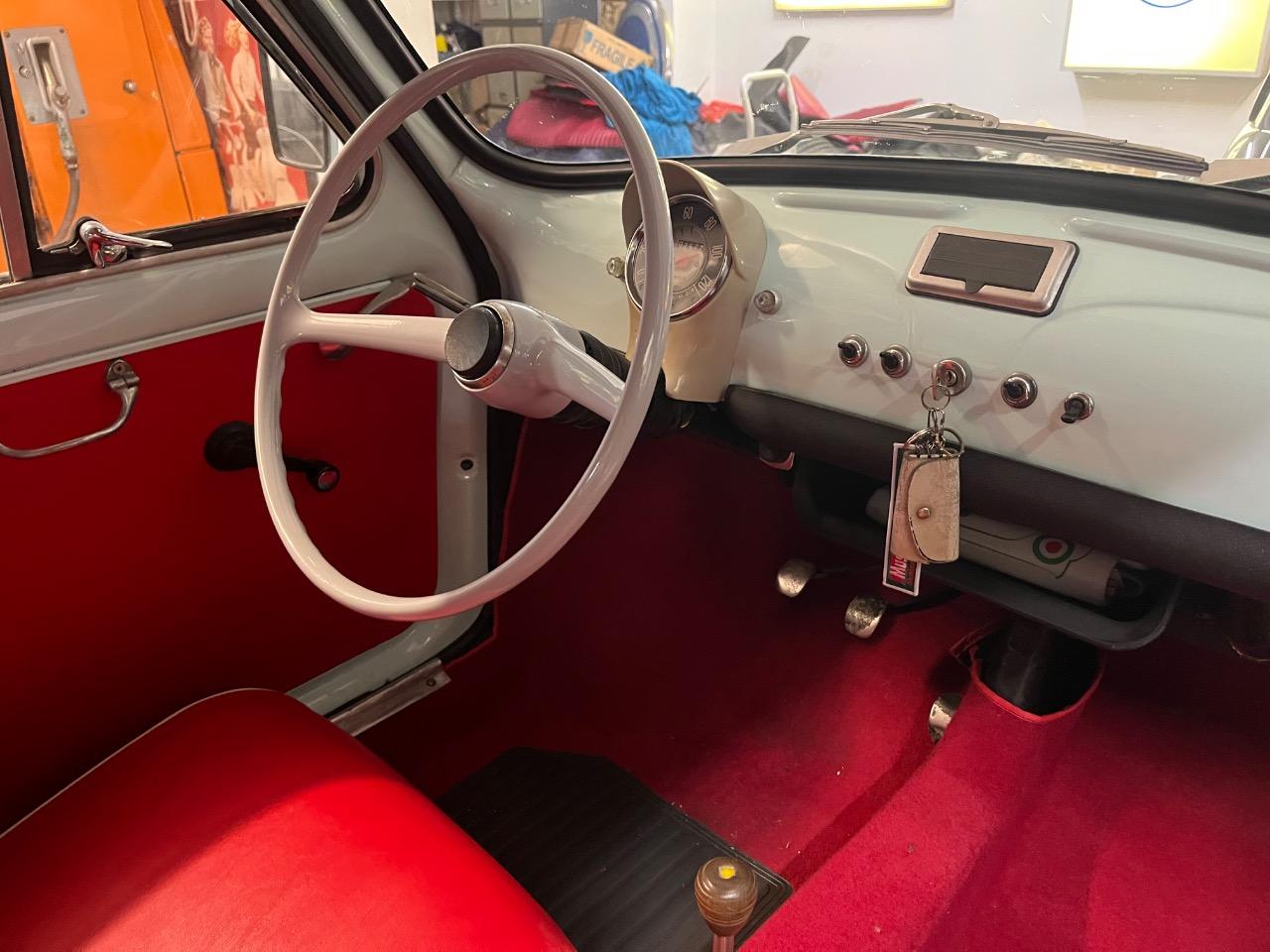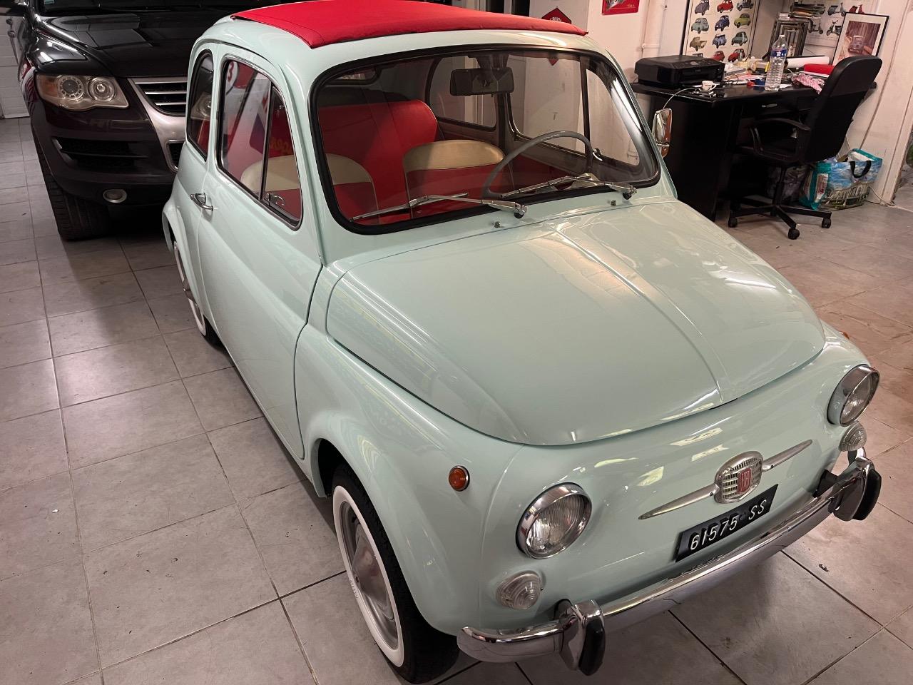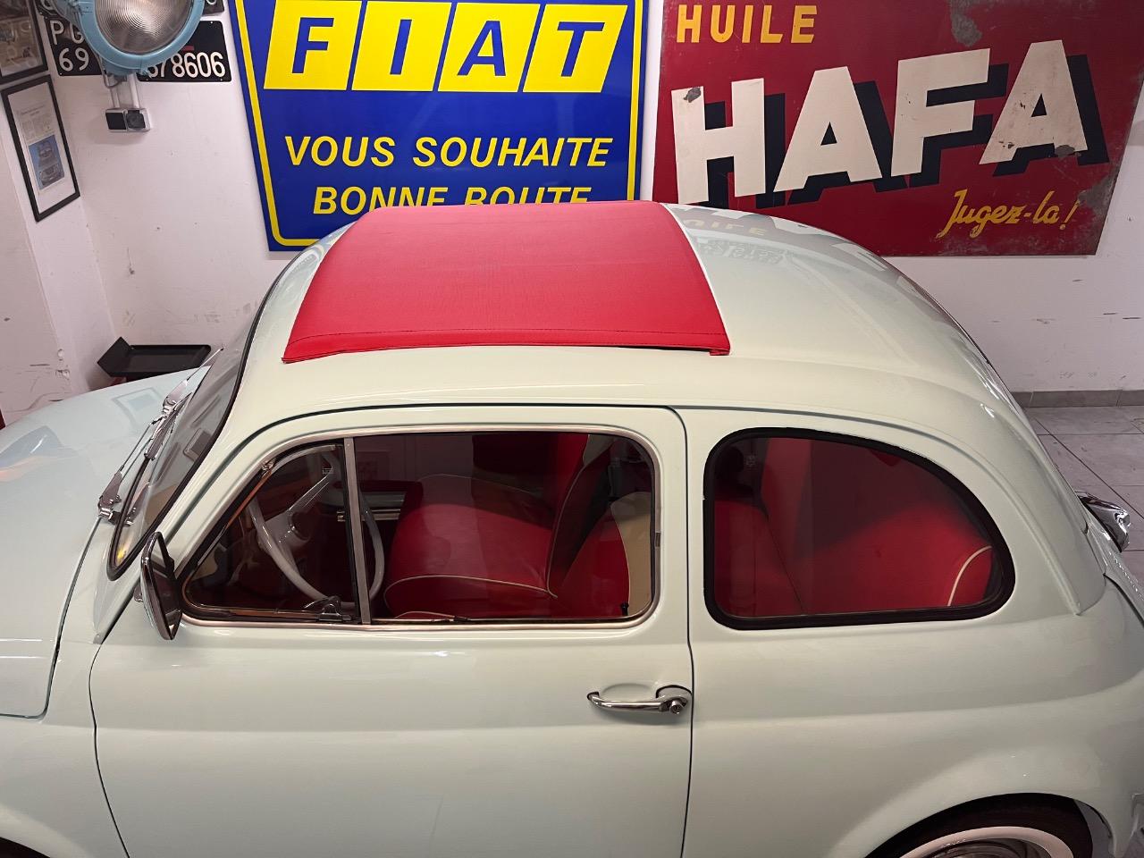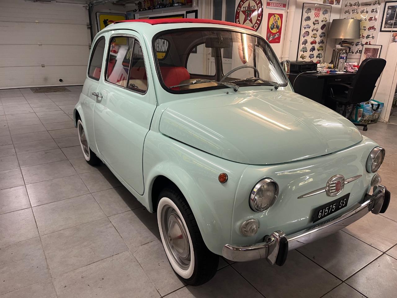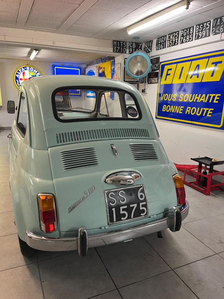 Spécialiste Fiat 500 à Reims grifo auto vous propose cette magnifique Fiat 500 F de 1970 couleur extérieur bleu Acquamarina intérieur simili rouge et blanc .