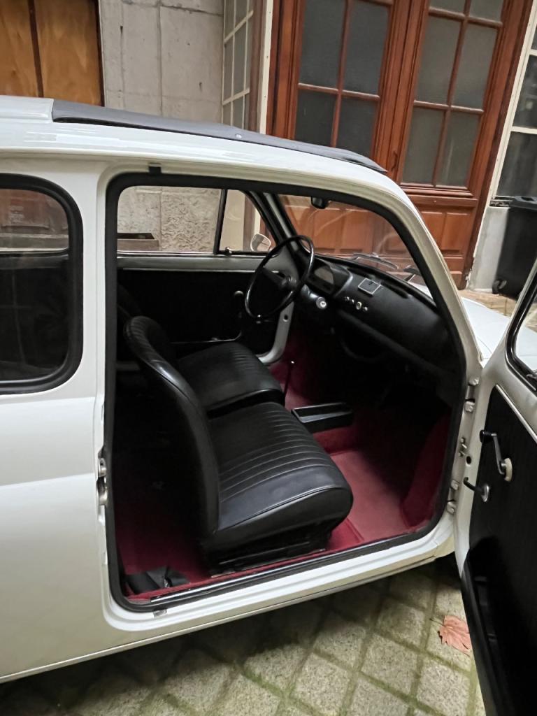 Sellerie noire en parfait état, moquette bordeaux.
