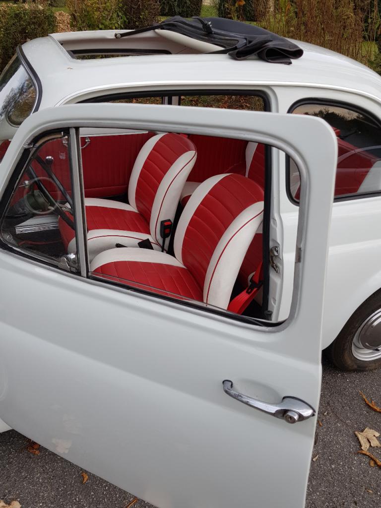 Belle Fiat 500 L de 1970 restaurée en 2013. L’intérieur est parfait et la mécanique aussi. Quelques travaux ont été effectués depuis, freins, allumage, fusées, pneus neufs Michelin, réservoir essence, mais il y a un peu de carrosserie a revoir.