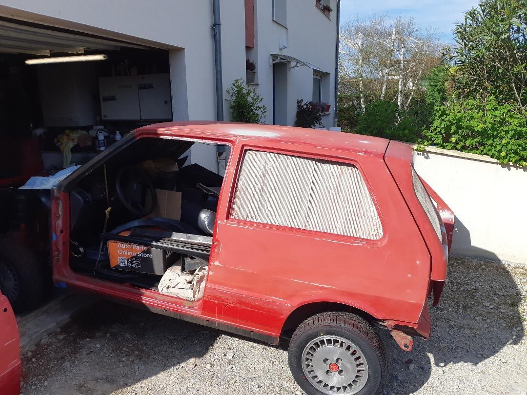 a finir de restaurer baguettes, autocollant, moteur a redémarrer, allumage ok, courroie distri ok injecteur neuf elle