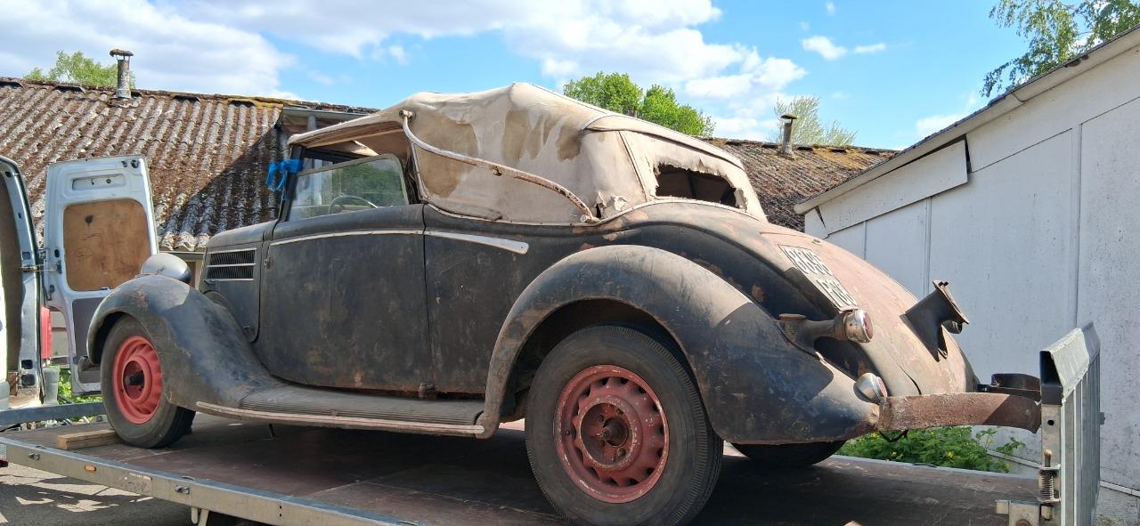 Cause déménagement et manque de place après retour de déplacement, vends rare Ford Matford V8 48, 1935 / 1936 CABRIOLET à restaurer.