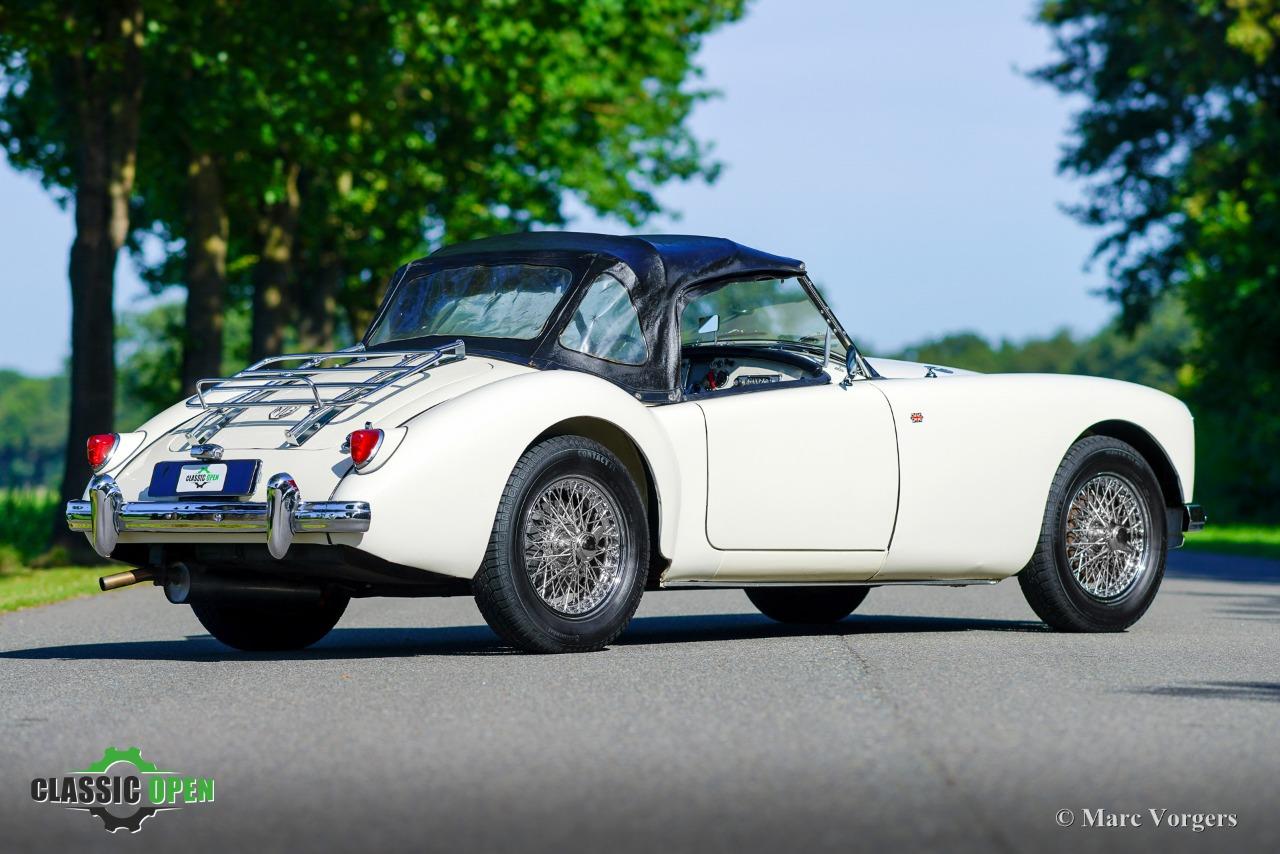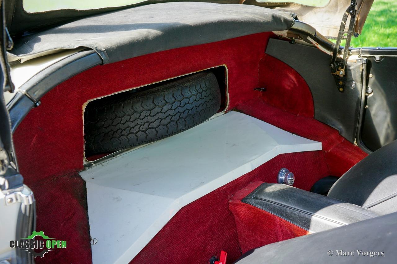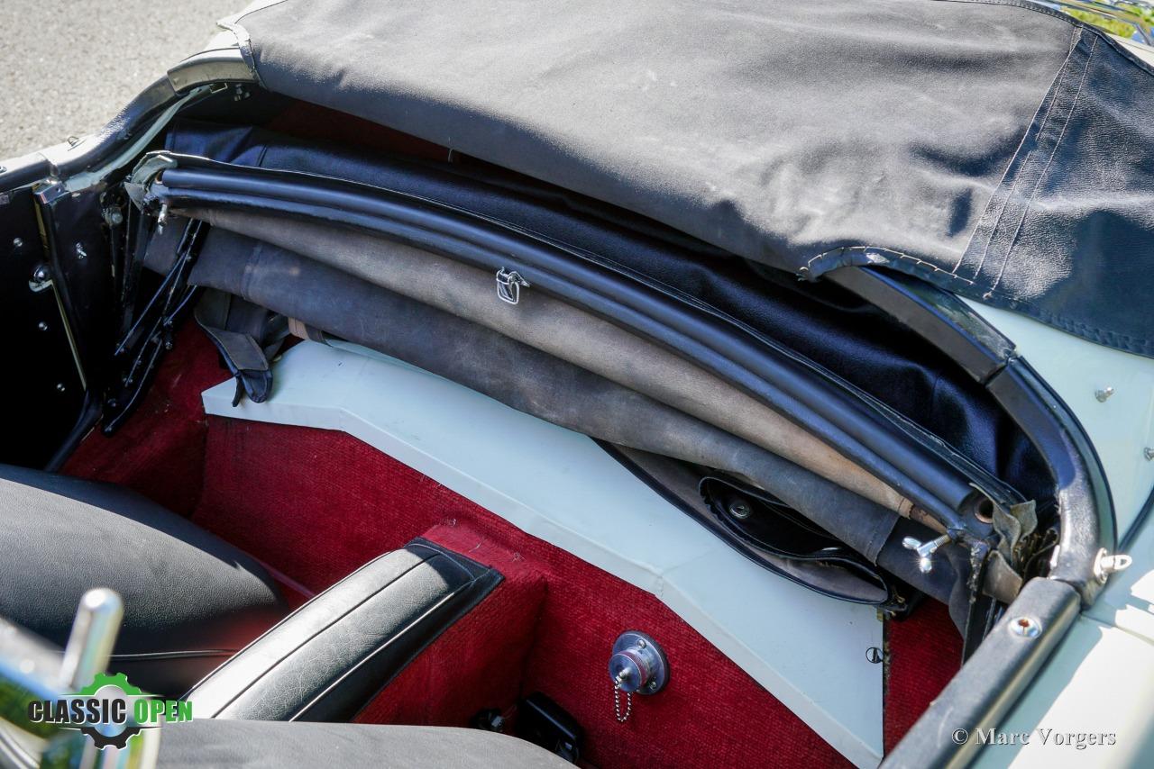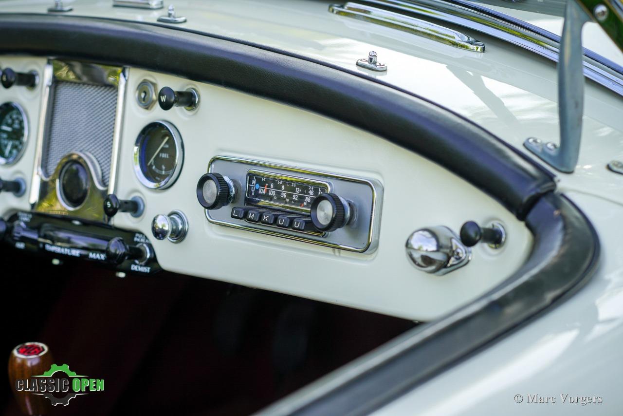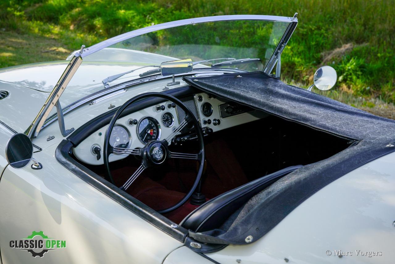Cette MGA est équipée de magnifiques roues à rayons chromées, de phares antibrouillard Lucas SFT575 supplémentaires, d'un porte-bagages chromé, d'un accessoire très pratique derrière les sièges pour ranger les vitres latérales, et d'une radio auto classique Blaupunkt Frankfurt avec PO/GO/MF !