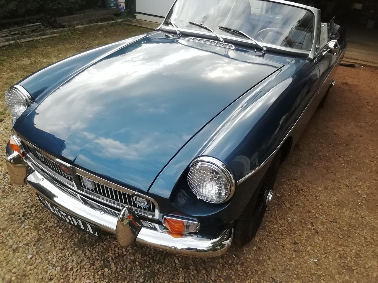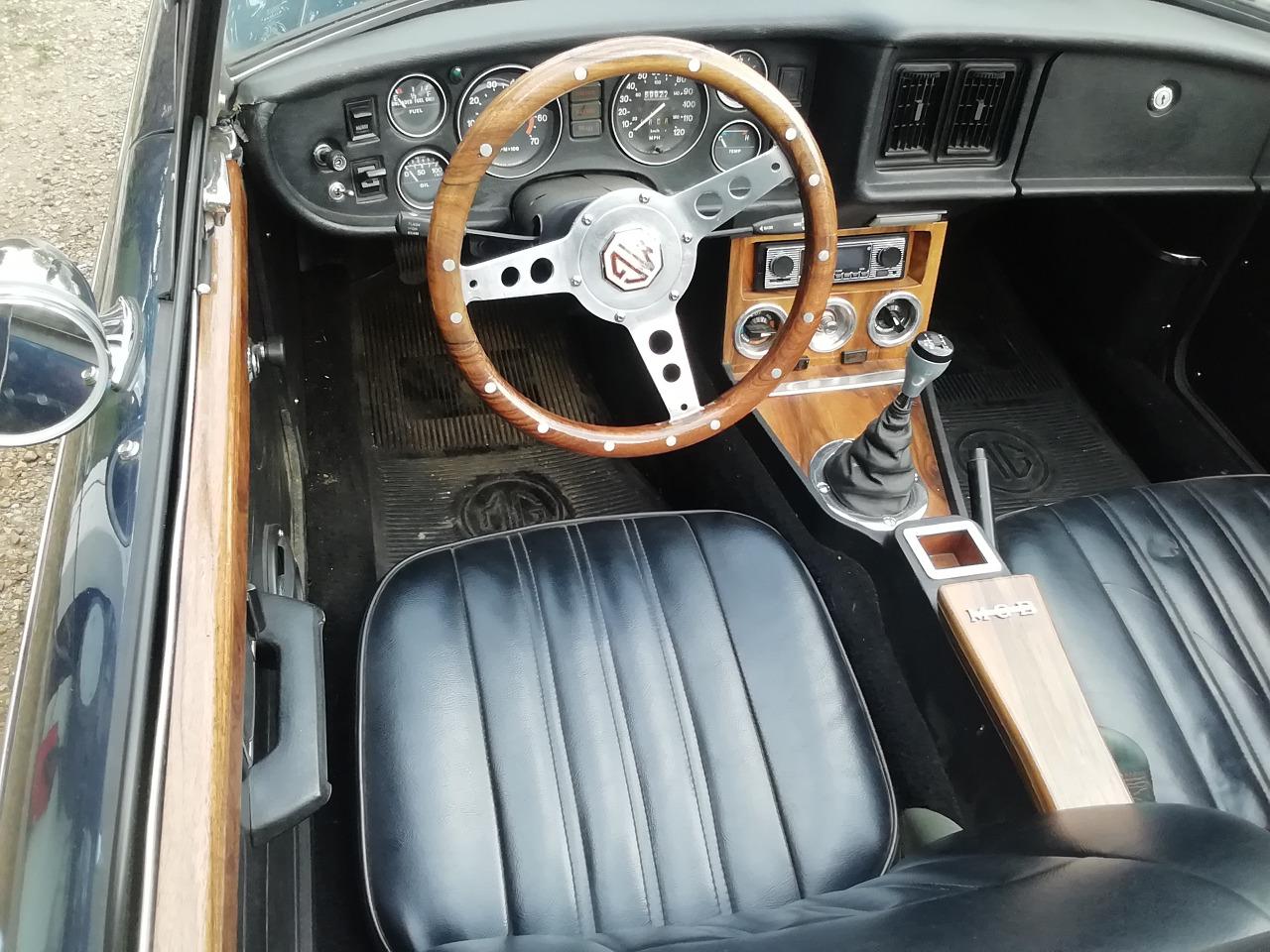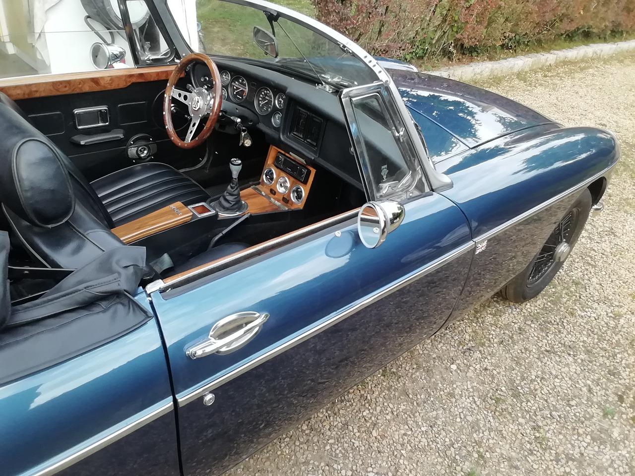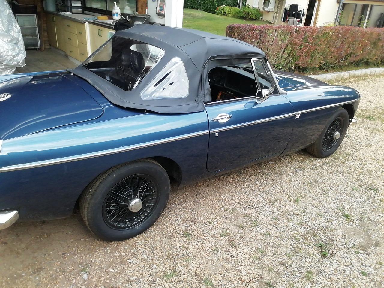 Vds mgb de 1977 super état peinture refaite 4 pneus neufs pot echappement inox allumage neuf mousse sellerie change intérieur habillage noyer ainsi que volant de capote neuve possède le couvre tonneau et le couvre capote démarreur batterie neufs possède les factures pare chocs inox