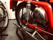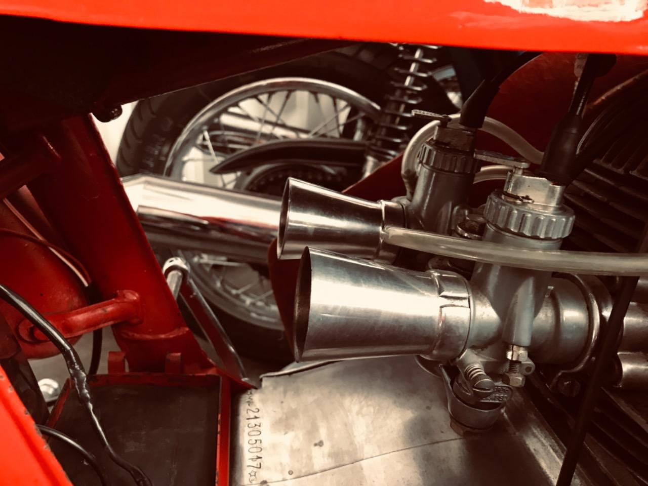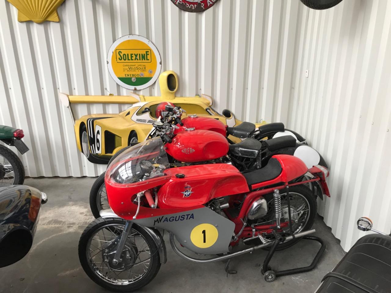Certaines entreprises surent se forger un nom dans leur domaine. Si Ferrari l’a fait dans l’automobile, MV Agusta y parvint dans le motocyclisme. Nées à un an de différence, les deux entreprises ont toujours misé sur la compétition, produisant des véhicules routiers dans le seul but de faire vivre leur activité sportive de compétition. La MV Agusta 350 B est une moto fabriquée par la firme Lombarde de Verghera, de taille moyenne elle avait une grande accélération et une allure ultra sportive. Techniquement, la moto est bâtie sur un cadre en tubes d'acier avec moteur contribuant à la structure. Son bicylindre 349 cc quatre temps refroidit par air est alimenté par deux carburateurs Dell orto , notre modèle atteint une trentaine de chevaux à 7650 t/mn avec un taux de compression de 9,2 . La fourche avant télescopique et les roues chromées à rayons sont magnifiques. Le freinage est assuré par deux tambours en alliage léger de 200 mm très efficaces, la moto ne pesant que 150 kg environ, la 350 B est donnée pour 155 km/h. Cette machine est une rare 350 B de 1971 portant le N° 21305013 et moteur N° 21305017. Elle est équipée d un carénage optionnel d époque, l'état de l’ensemble est quasi parfait après presque cinquante ans. L’emblématique marque était la plus célèbre et glorieuse au monde à la belle époque. Quelques années après, la firme s'enlisait dans les difficultés, notamment financières et devait cesser de fabriquer ses motos qui avait acquis prestige et célébrité par la supériorité écrasante de la marque italienne en course. Documents italiens depuis l'origine.