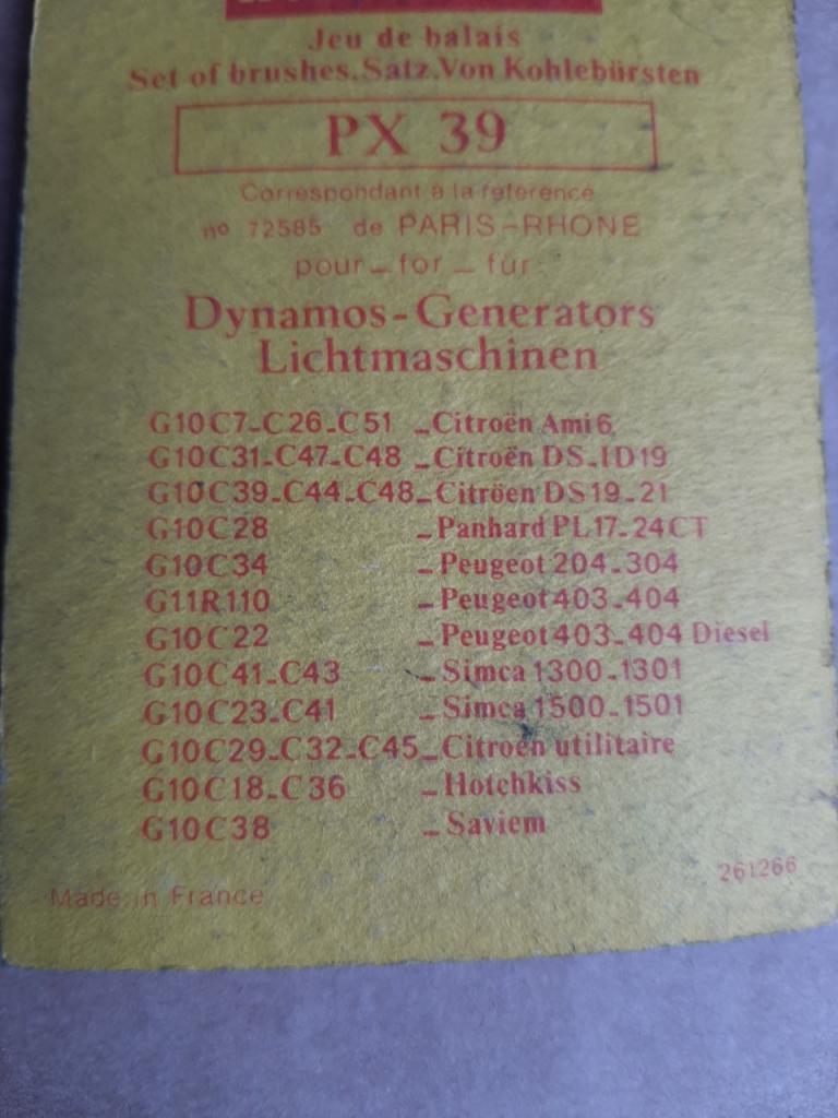 Jeu de balais dynamo paris rhone g10 pour citrôen ds id