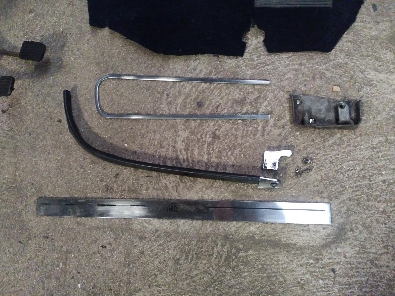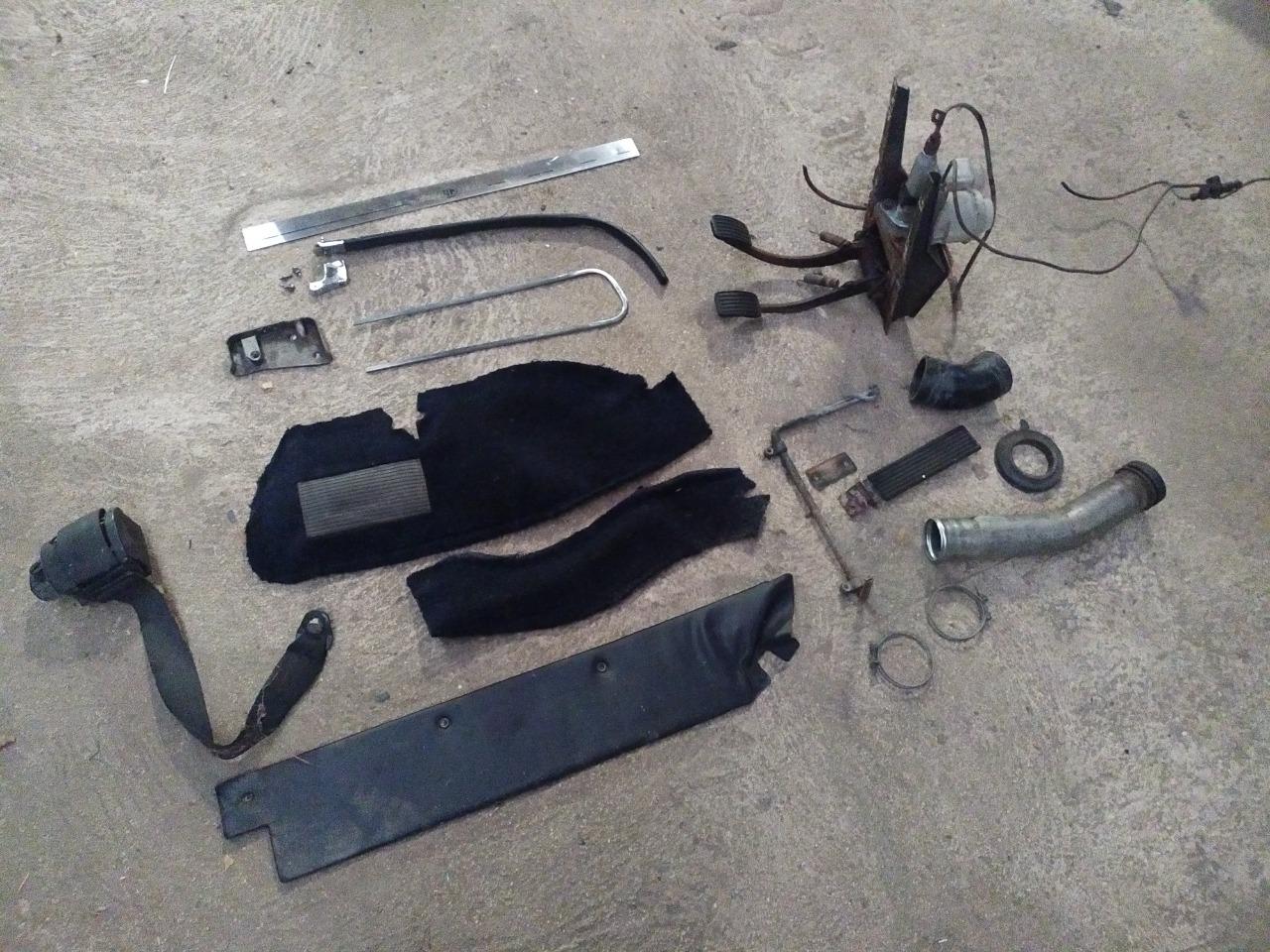 Petit lot de pièces provenant du côté droit de l auto , pedalier, marche pied, enrouleur de ceinture , cache baguette skai noir , voir photos.