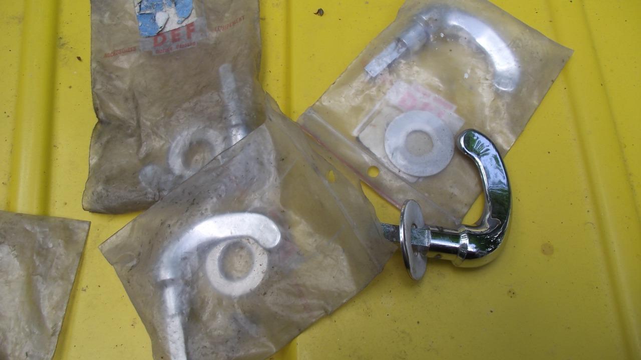 poignées de porte chromée (et non alu poli) 15 euro pièce ou 40 le jeu de 4. tirettes de starter 2ch ami 6 (jaune et blanche) 15 euros pièce. paire de clignotant orange 50 euros la paire. . tout ce matériel est neuf D'ORIGINE et non du refabriqué de perpette les oies. ces prix sont hors expédition