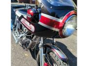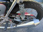 Roulements de vilebrequin, coussinets de bielles (côte standard), soupapes, guides et ressorts, disques d’embrayage et amortisseurs de transmission, pignons de sortie de boite et de primaire, circuit électrique, allumage électronique Boyer, régulateur de tension et bobines, tubes de fourche et joints spi, amortisseurs Hagon, commandes reculées Sweap Back, jantes à rayons en inox, échappements mégatons… Tout a été remplacé, l’épurateur centrifuge nettoyé, la culasse rectifiée.
