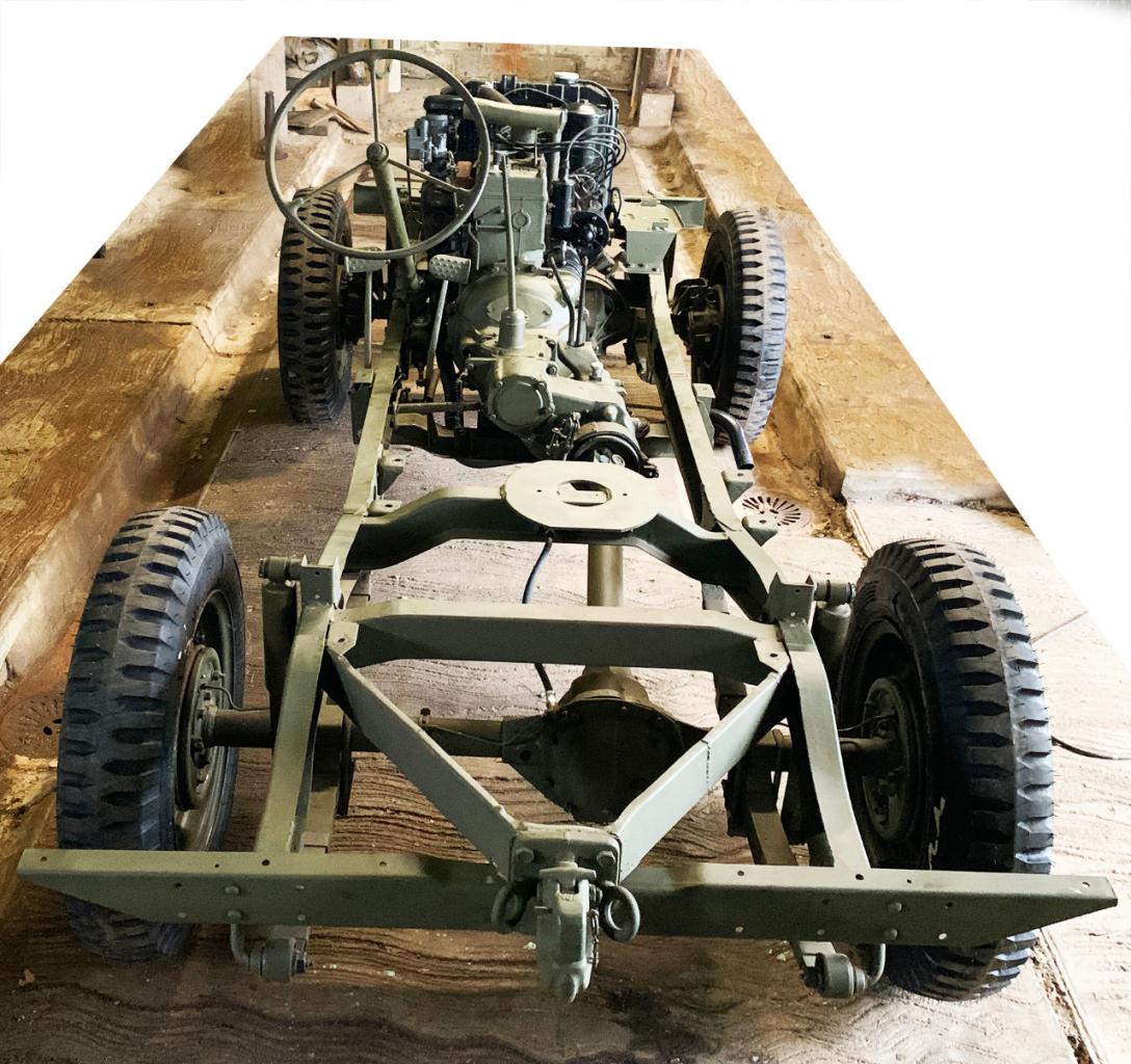 1 - le châssis (roulant) et son moteur (tournant), tout deux déjà restaurés et comportant chacun de nombreuses pièces d’origine.